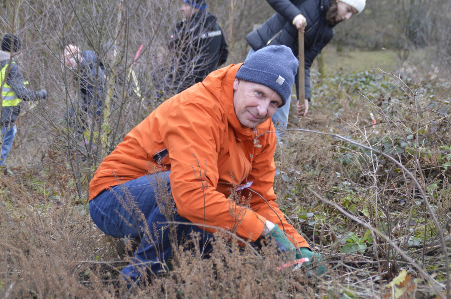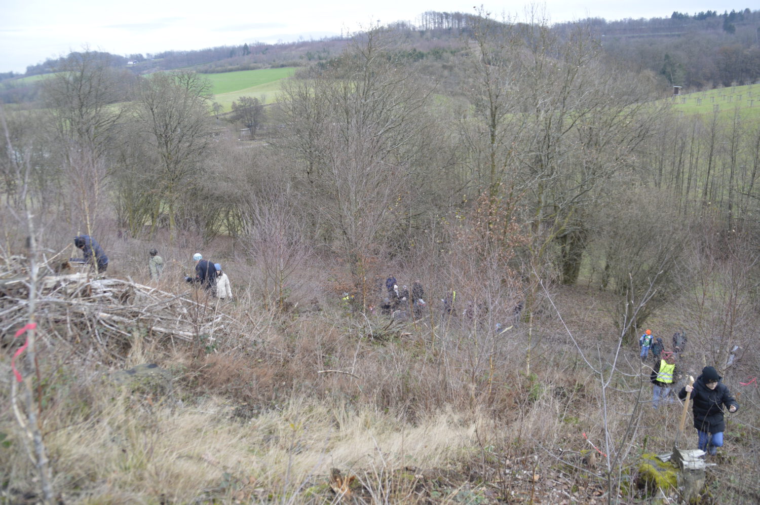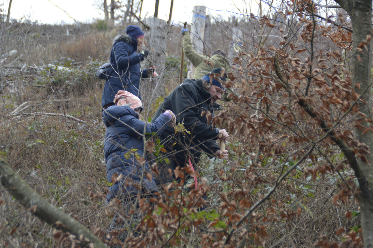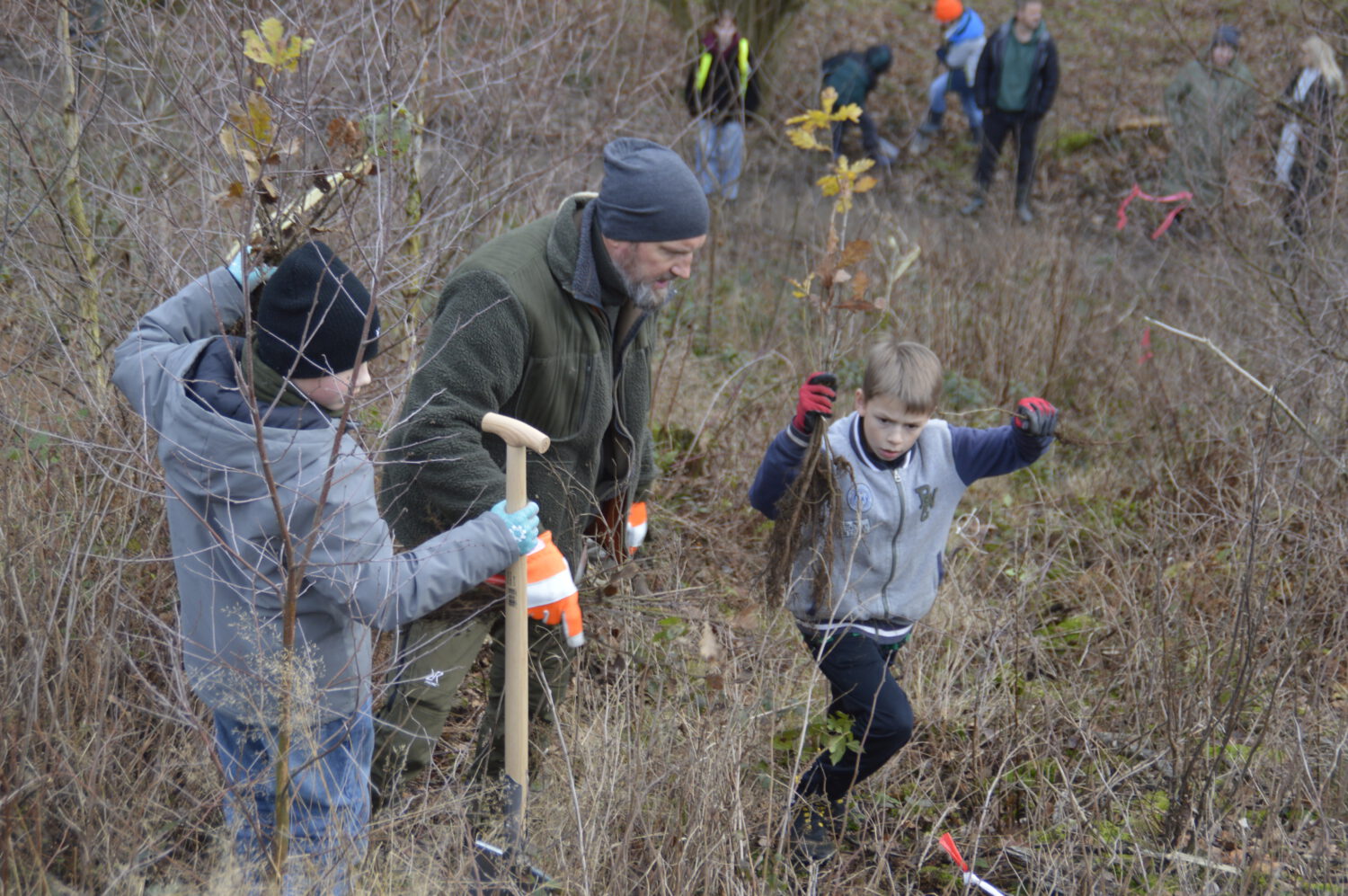 Gemeinsam mit der Schulwald-AG unter federführung von Frau Protzer organisierten Schülerinnen und Schüler, Eltern und Lehrkräfte eine bunte Pflanzaktion: Traubeneichen, Buchen, Vogelkirschen und Winterlinden fanden ein neues Zuhause auf der ehemaligen Kalamitätsfläche. Unterstützt wurde das Ganze vom Team des Naturschutzzentrums.