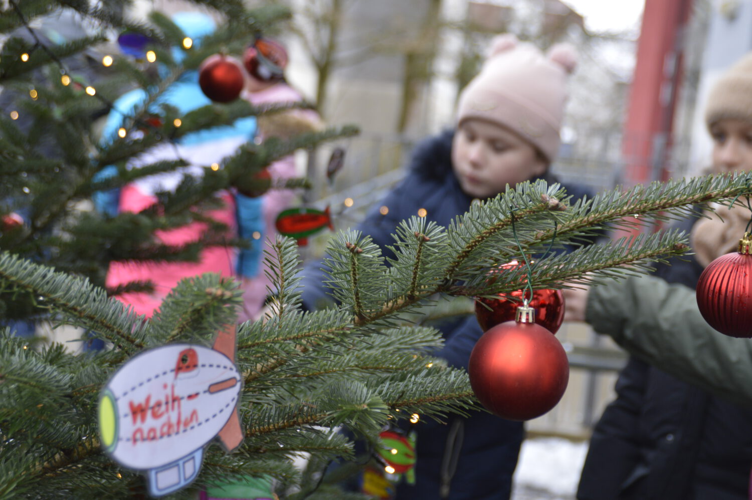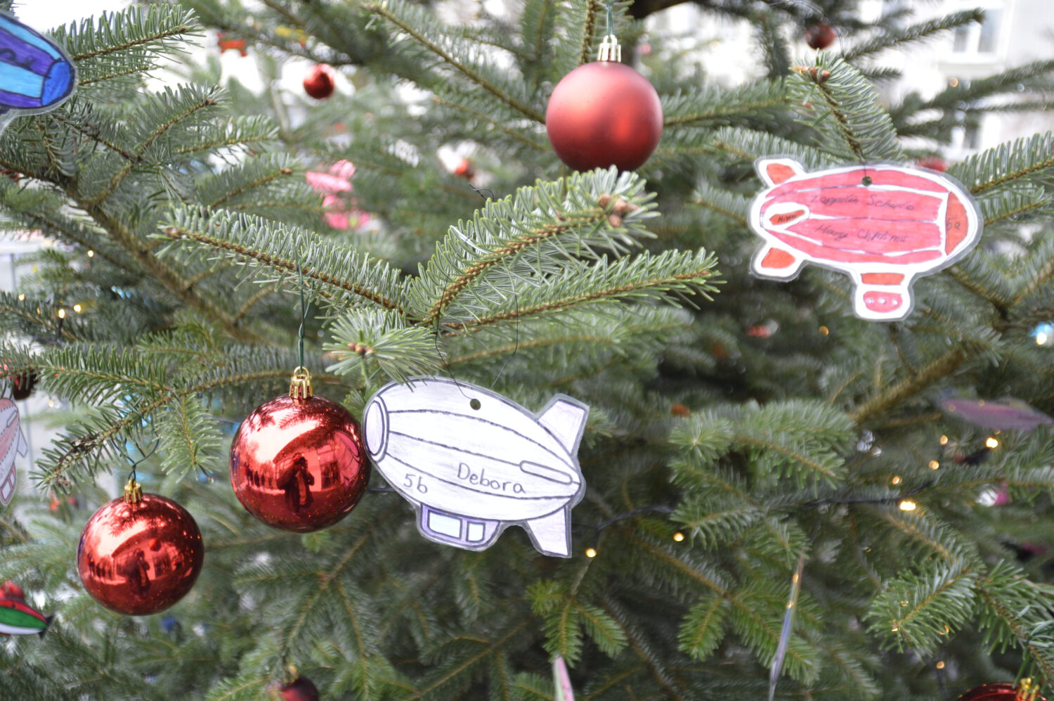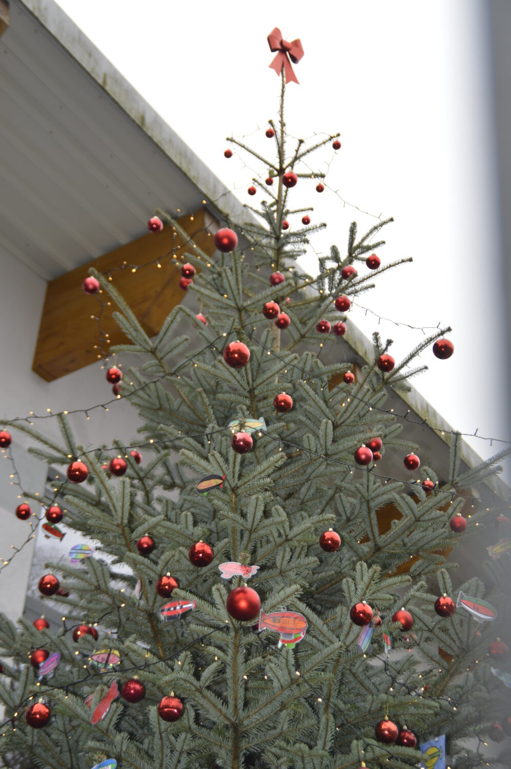 Mit Freude und selbstgestalteten Zeppelinmotiven wurde heute unser Weihnachtsbaum auf dem Zepp-Schulhof von der 5a geschmückt.