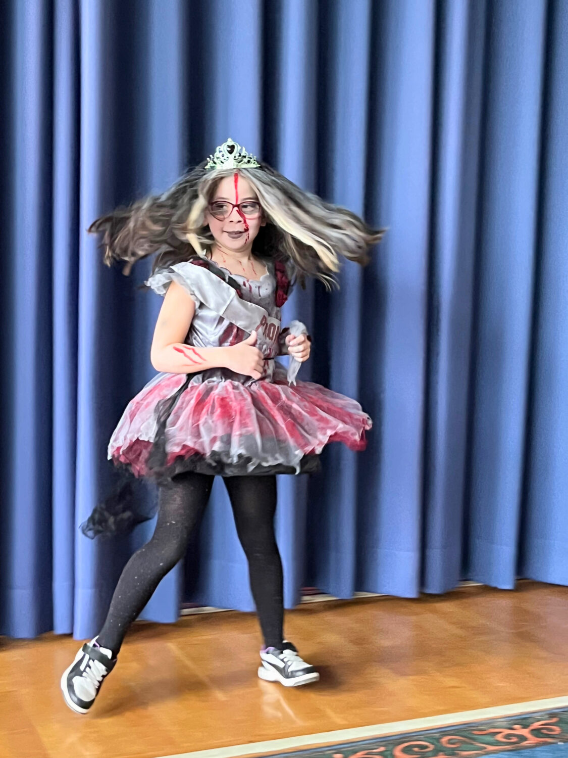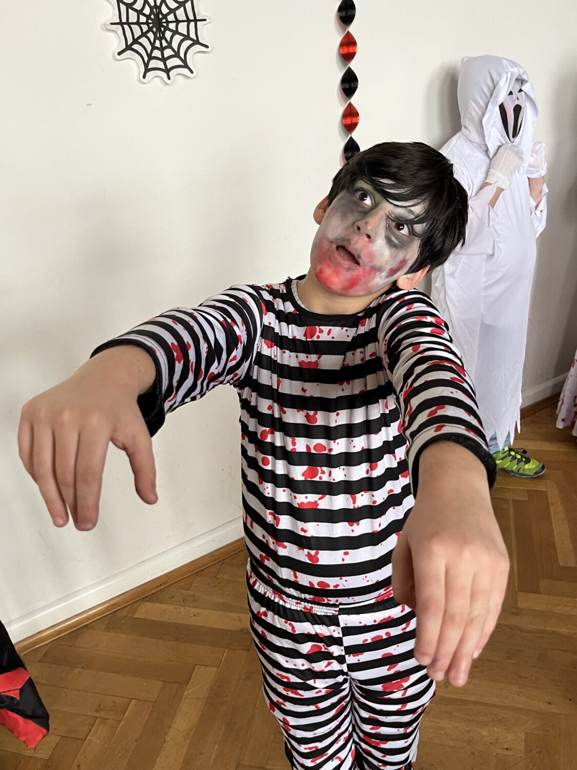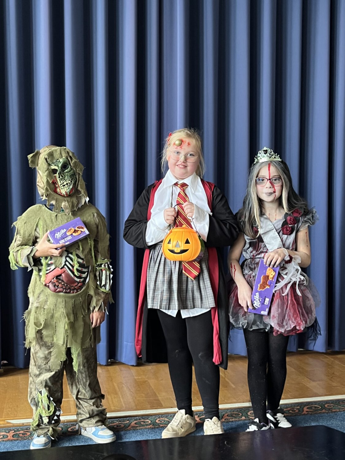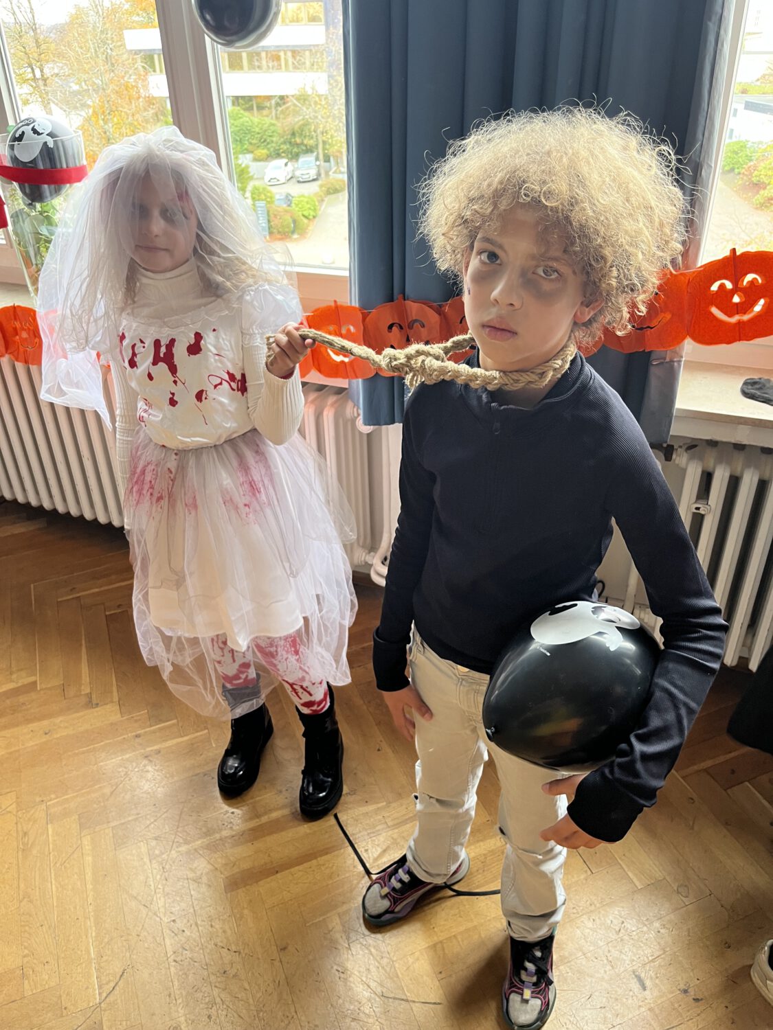Mit viel Engagement und Kreativität hatte unsere SV ein buntes Programm vorbereitet. Besonders beliebt war das Spiel „Reise nach Transsilvanien“, bei dem Vampire, Hexen und Gespenster lautstark angefeuert um die Wette reisten und jede Menge Spaß hatten. Auch beim Kostümwettbewerb und weiteren Spielen war die Stimmung ausgelassen und eine Polonaise aus strahlend-gruseligen Gesichtern verließ die Aula am Ende.