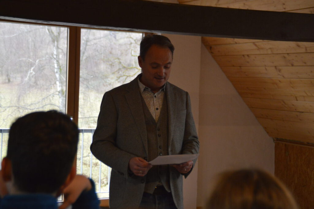 Zum Abschluss der Feierstunde übergaben Vertreter des Naturparks(Frau Woeste, Regionalmanagerin des MK, Herr Fuhrmann u. Herr Schmitz vom Verein Naturpark Sauerland-Rothaargebirge) feierlich das Zertifikat – und als kleines Highlight durften sich die Schülerinnen und Schüler über neue Entdeckerwesten freuen.