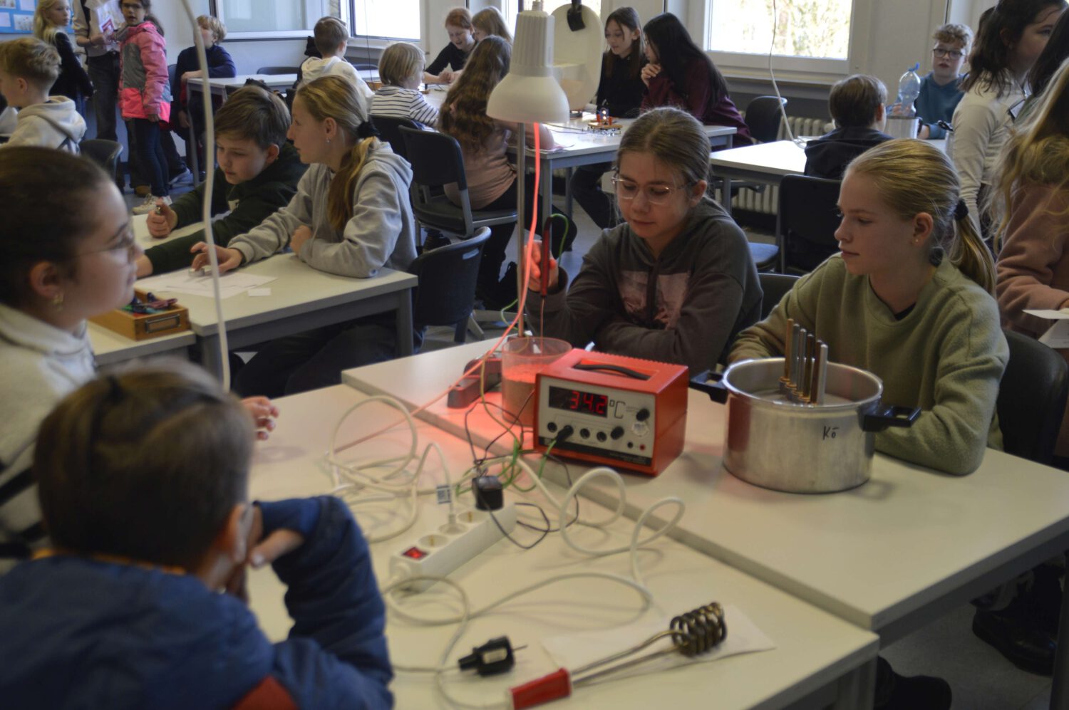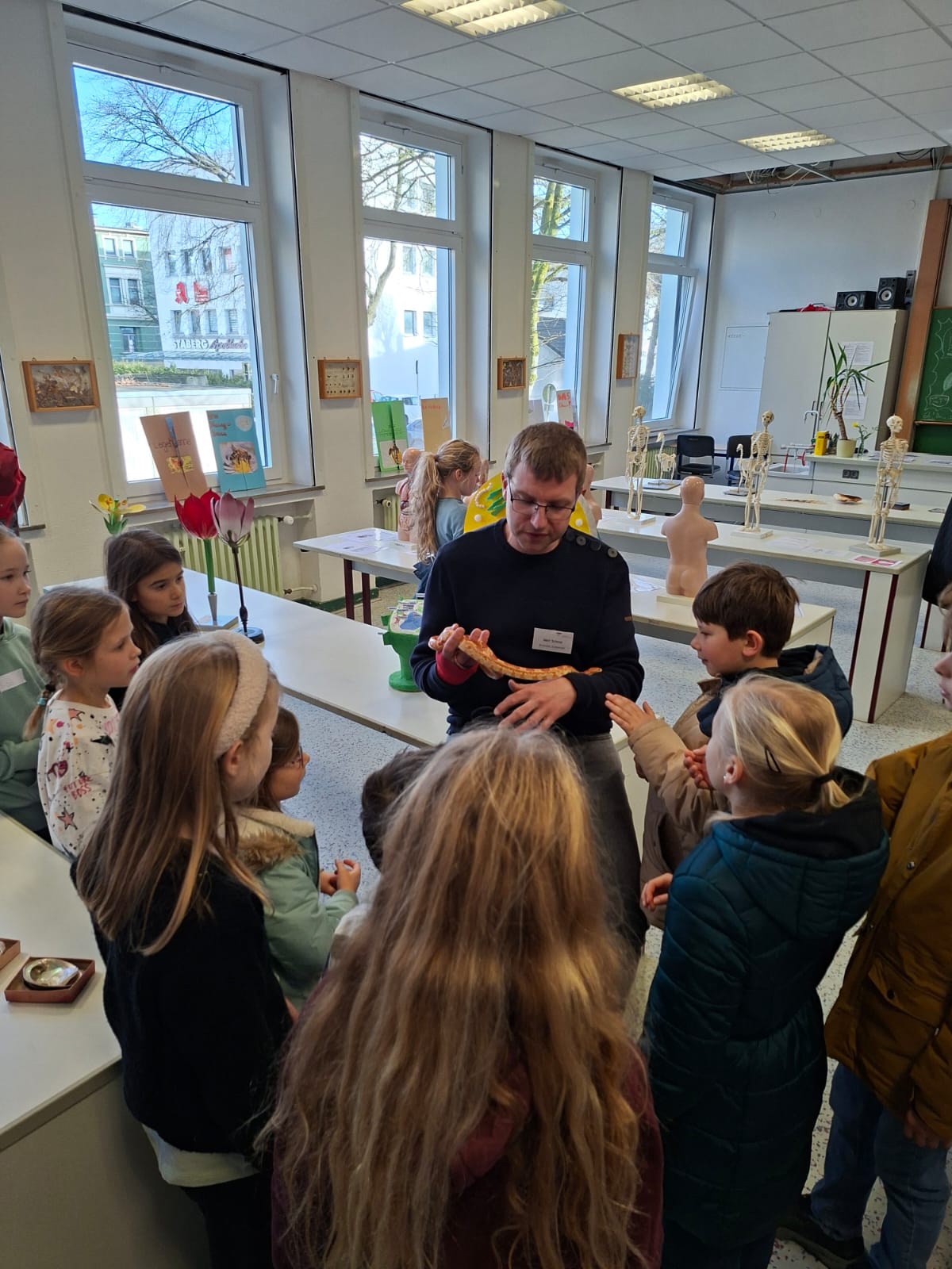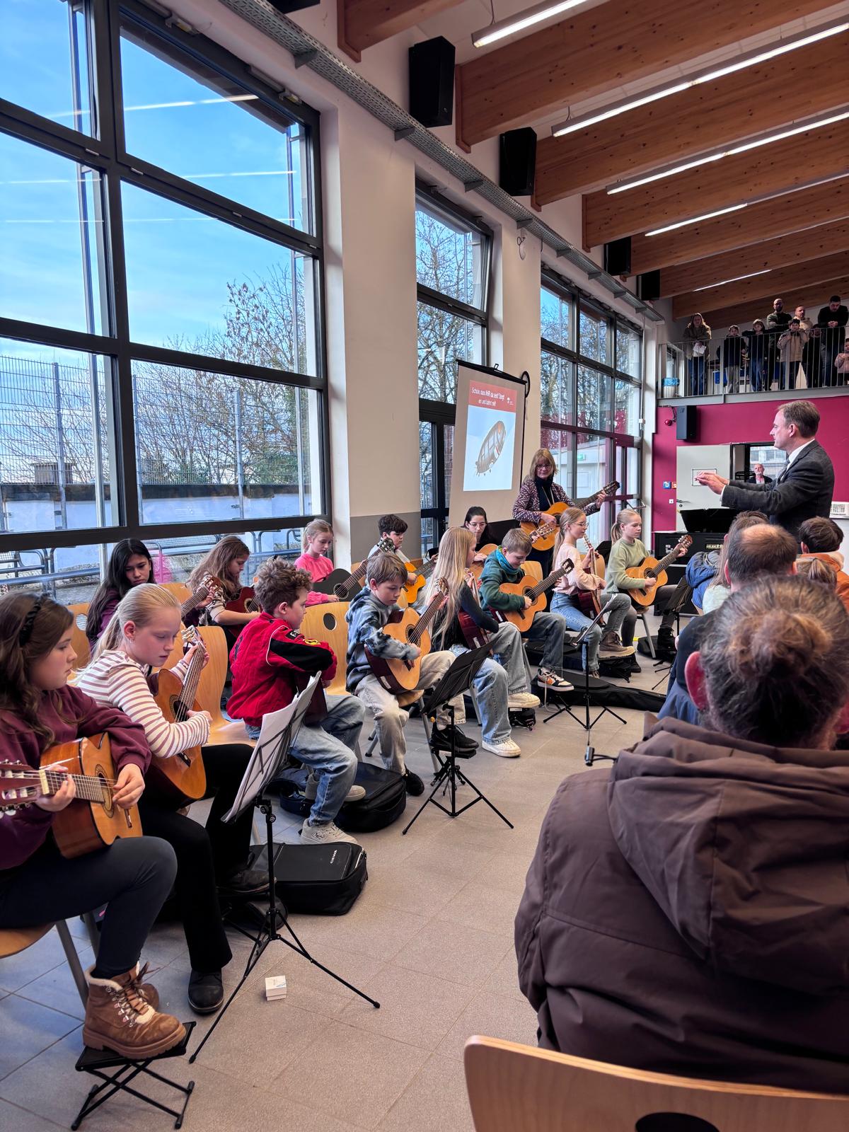 Eröffnet wurde die Veranstaltung um 9.00 Uhr durch die Schulleitung. Herr Jaques und Frau Biermann begrüßten die Gäste herzlich und stimmten gemeinsam mit der Gitarren-AG musikalisch auf einen abwechslungsreichen und lebendigen Vormittag ein. Im Mittelpunkt stand das vielfältige Schulleben des Zepps. Besonders der Mitmachunterricht fand großen Anklang: In neuen und spannenden Fächern wie Politik, Chemie oder Geschichte konnten die BesucherInnen aktiv teilnehmen und einen authentischen Eindruck vom Unterrichtsalltag am Zeppelin-Gymnasium gewinnen. Im Anschluss luden zahlreiche Mitmachstationen, AGs und weitere besondere schulische und außerschulische Angebote dazu ein, die besondere Vielfalt der Schule zu entdecken. Ob naturwissenschaftliche Experimente, kreative Aktionen oder sportliche Einblicke – überall war die Freude am gemeinsamen Lernen und Ausprobieren spürbar.